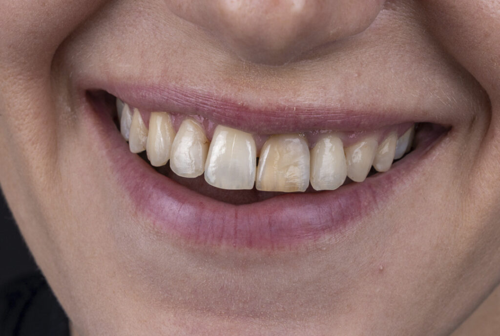 Любые изменения целостности эмали влияют на то, как она отражает свет. Поэтому Изменение цвета зубов может выглядеть неравномерным или более заметным при определенном освещении.